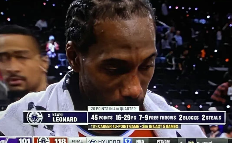 今日,快船官方确认,伦纳德因右脚踝扭伤,下场对阵篮网出战成疑。